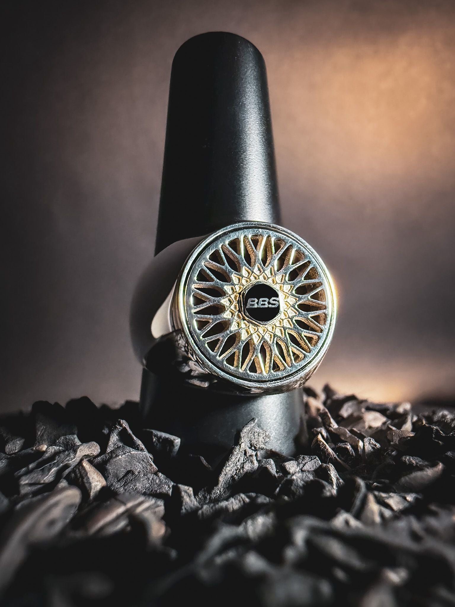 ⚙️ Inspired by iconic BBS alloy wheels, this rotating-rim signet ring is now available for limited pre-order.